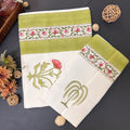 Product Details: Featuring authentic Indian handblock printing by skilled artisans, the innovative waffle weave honeycomb texture delivers superior absorbency while drying 3x faster than regular towels, eliminating musty odors and reducing energy costs. Each lightweight quick-dry towel transform your daily routine into a spa-like experience, while the ultra-soft cotton remains gentle on sensitive skin and maximizes linen closet space. The breathable waffle weave prevents bacterial growth, keeping towels fresh longer between washes without turning rough or scratchy like ordinary towels. Material: 100% Pure Waffle Cotton Set Includes: -1 Body Towel (30"x60") & 1 Hand Towel (16"x24") in matching handblock print Care: Cold Wash |